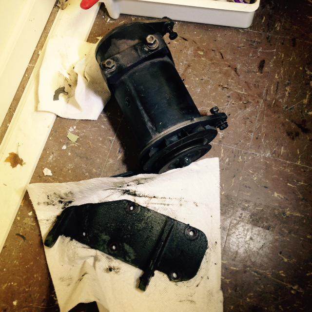 Next I needed to install the alternator. Oddly enough, the two bolts that hold the alternator to the new plate came with nuts that didn't fit. Nor could I find any nuts that would fit the bolts I was sent. I eventually went back to the hardware store for yet more hardware and finally got the alternator bolted to the engine along with a new fan belt.