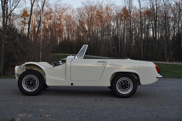 As you can see by the attached photo, Gloria is now back on her own four wheels. The suspension is complete, brake lines, fuel lines, fuel tank, sender and pump all installed. The door assemblies were a b***h - couldn't have done them without Norm's articles - thanks Norm! We bought the doors back in 92, when we first started this resto, but they were never installed. The lower hinge on the right door needed mods to fit, as did the latch area. It seems like this was a factory defect!! The latch panel had been welded in too low, so didn't match up with the receiving latch on the B post, so some mods were required there, too. However, perseverance won through and both doors are complete with Q/L's, windows, winder mechs, weatherstrip (and the fuzzy strip!), and the door capping.
