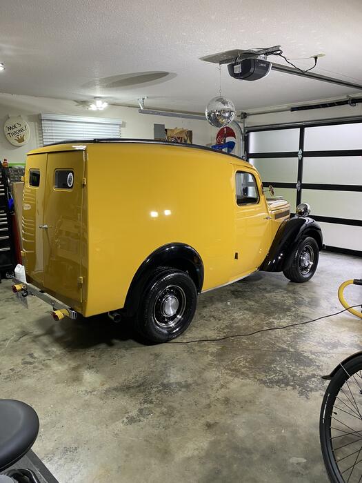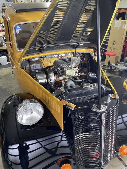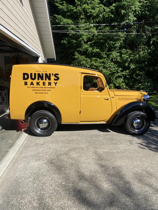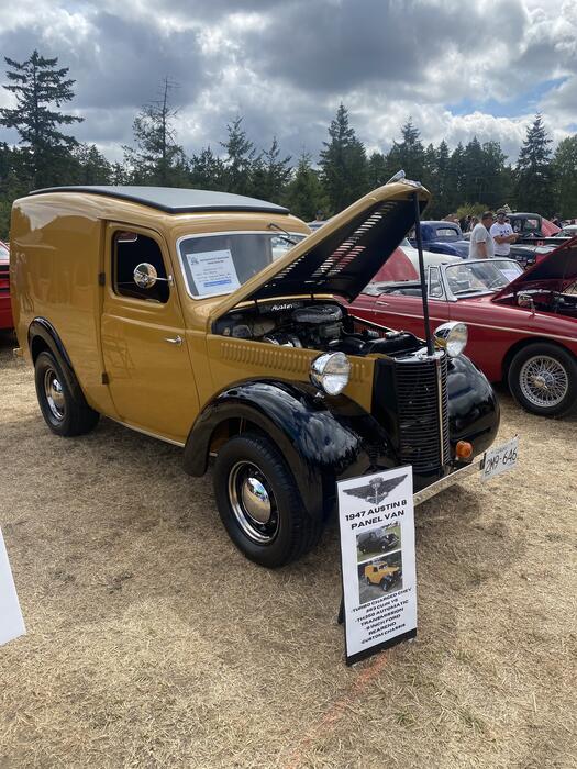 47 Austin 8 Panel Van. Vehicle has been modified with a Chevrolet 283 cu in V8, 3 speed automatic transmission, 9 inch Ford rear end and on a custom built chassis.