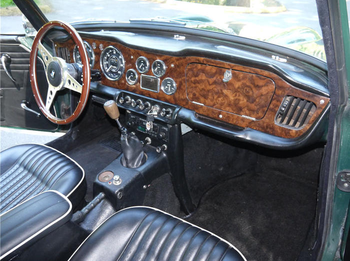 Purchased from widow of original owner who lived just east of Los Angeles in early 2011. She has a refreshed interior with the most recent addition being a burled walnut instrument panel. She came from the factory with the Surrey Top and wire wheels, with the overdrive gearbox added later. Unrestored but has been taken care of over the years.